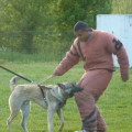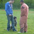 chien débutant dans la discipline ou n’ayant pas obtenu 75% à l’épreuve de mordant.